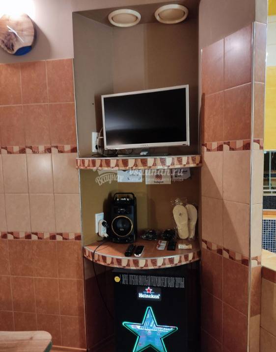 Большой теплый бассейн с гейзером, водный баскетбол, массажное кресло, комната отдыха, зона отдыха, напитки и снеки, ТВ, Wi-Fi. 2 душевые, финская парная (сухой пар). Полотенца, простыни, тапочки, фен. По запросу предоставляем посуду и бокалы.
